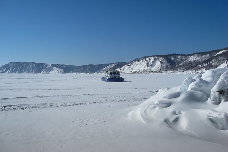 The lake's ice can be up to 2 meters thick and often contains unique patterns and bubbles.