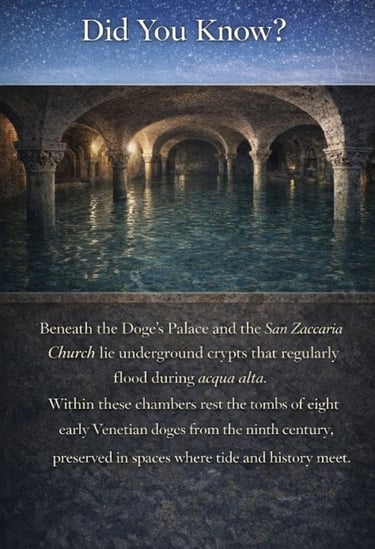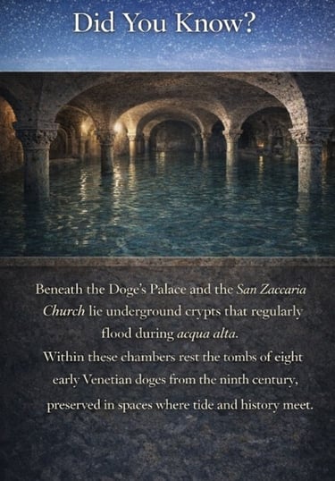 · Venice has no natural freshwater source. For centuries, residents depended on rainwater collected in stone cisterns beneath courtyards, filtered through layers of sand and gravel, many of which still exist today.